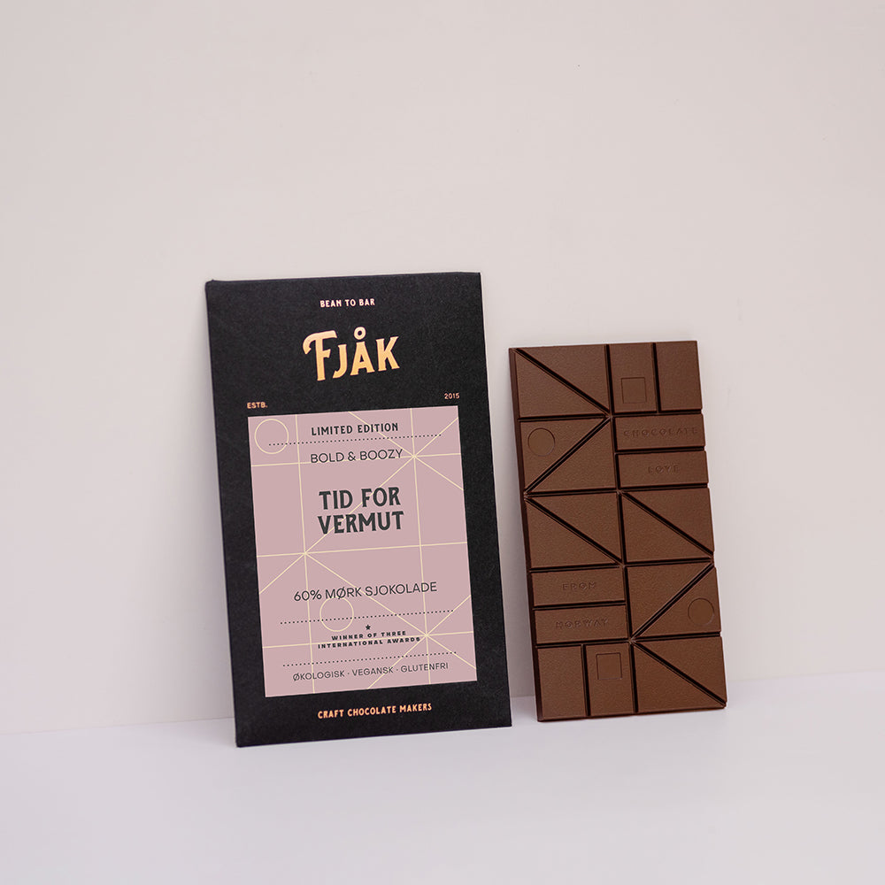 Cocoa beans*, unrefined cane sugar*, cocoa butter*, vermouth, juniper*, cinnamon*, fennel seeds*, orange peel*, olives, candied orange peel*. |